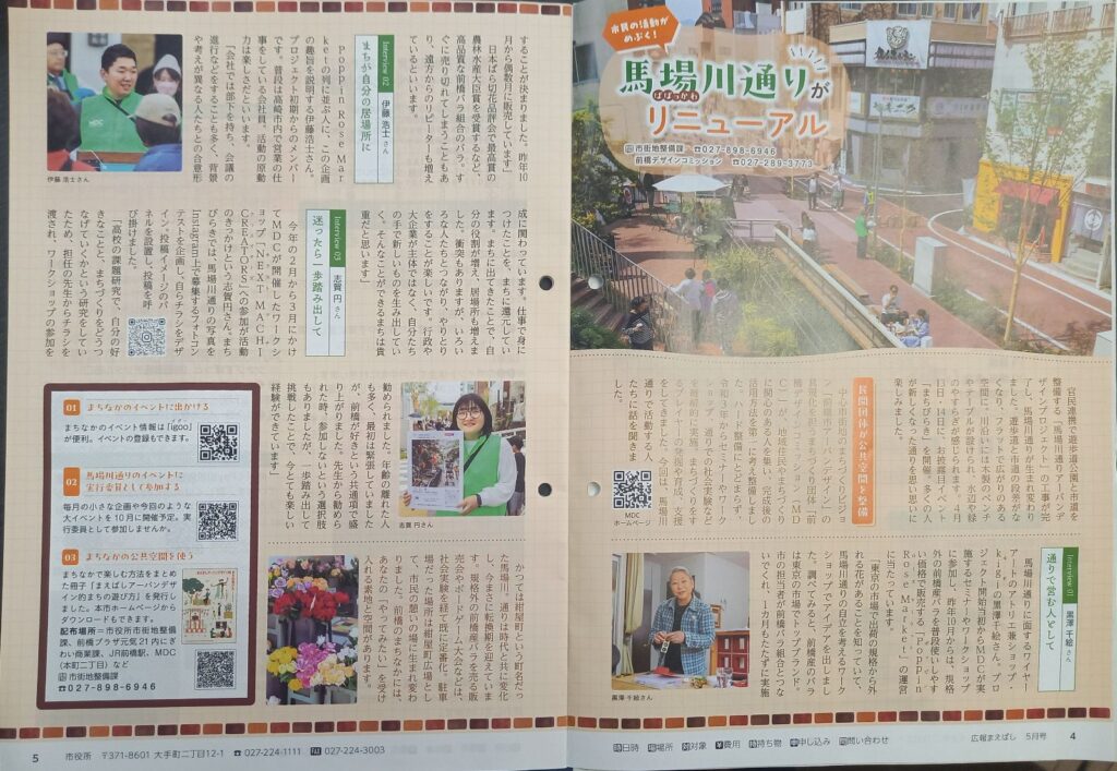 毎月前橋市の各家庭に配布されている【広報まえばし】の5月号ではリニューアルした馬場川通りの特集がされていました。